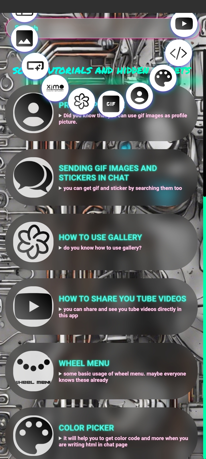 xomo chat is an advanced chat app where user can message user some html elements that let user learn html more. normally we made this app for them who likes to learn programming. so html is a building block of a website so we allow user to start learning from html. here we use some css styling and different js examples to let user learn them too. it allows secured chat. for make chat more secured we block some js functions too.